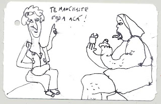 te cuento que la gorda, porque era gorda, sacó el alfajor y el chocolate esataba derretido, un asco, le quedab todo afuera, los dientes, ùaajjj